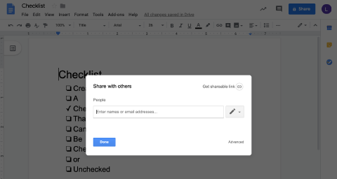 Once you have your checklist completed in a Google Doc, you can collaborate with your team on it or with a customer by "sharing it with others". To share a Google Docs file follow these steps: